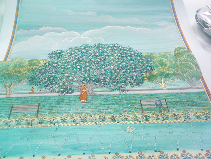 Turkish artist, Burcu Cenburci’s interest in Islamic arts is inspired by Mughal and Karamemi florals, and the Vedic culture of ancient India. Focusing on gardens and landscapes, Bercu creates miniature paintings, which blend these traditions with a modern touch.