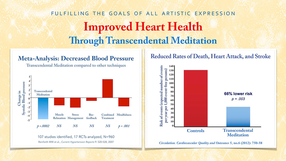 In its quest to fulfil all avenues of artistic expression, the Academy of Arts for Enlightenment recommends the Transcendental Meditation programme and its advanced techniques such as the Transcendental Meditation–Sidhi programme. The TM technique is the most thoroughly researched field of personal development. Over 600 scientific research studies have been conducted on the Transcendental Meditation and the TM–Sidhi programmes at more than 250 independent universities and research institutions in 30 countries. Hundreds of these studies have been published in peer-reviewed medical and scientific journals. These studies have demonstrated a wide range of benefits to mental and physical health, relationships and society as a whole.